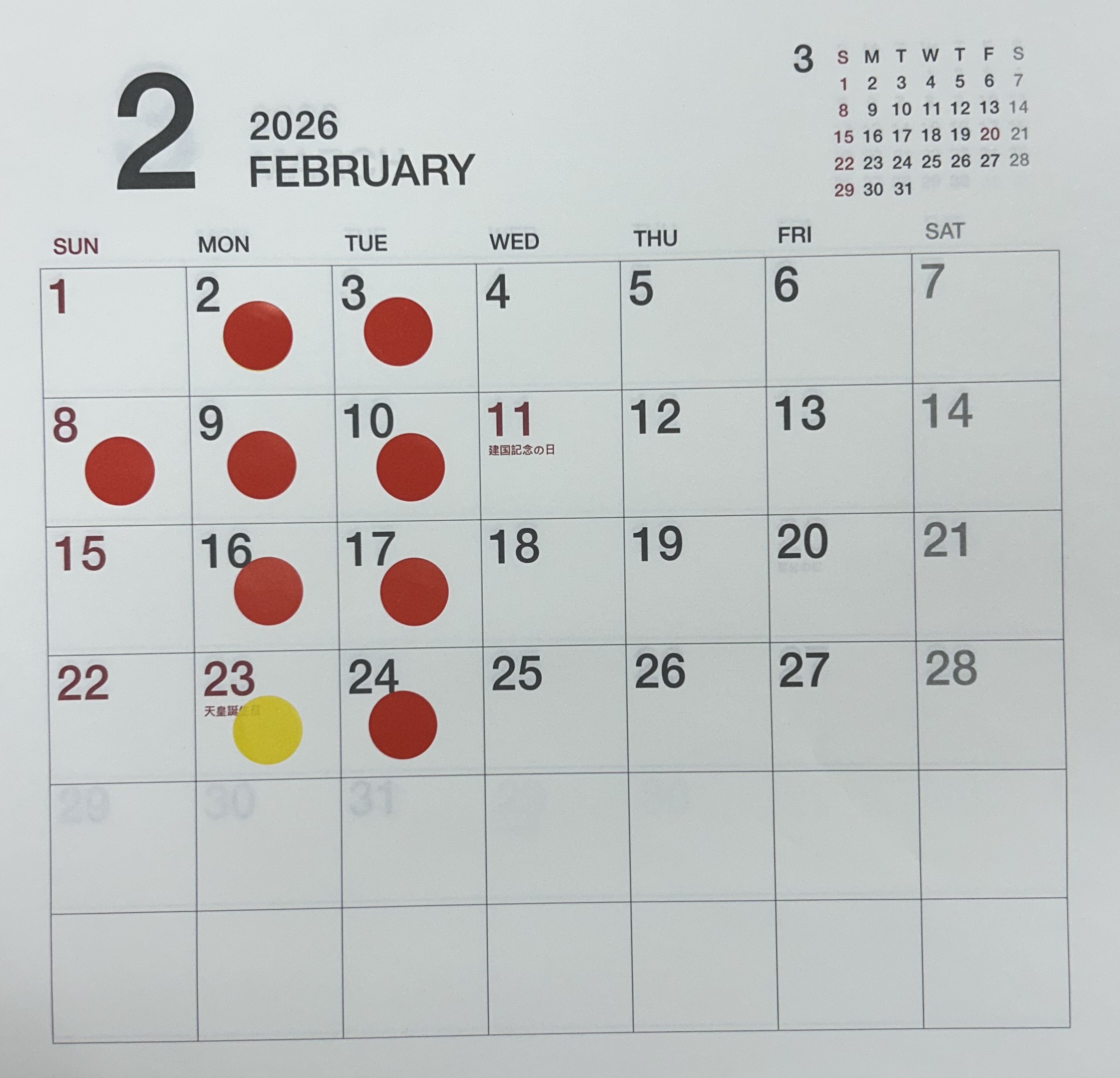 2月カレンダーです
