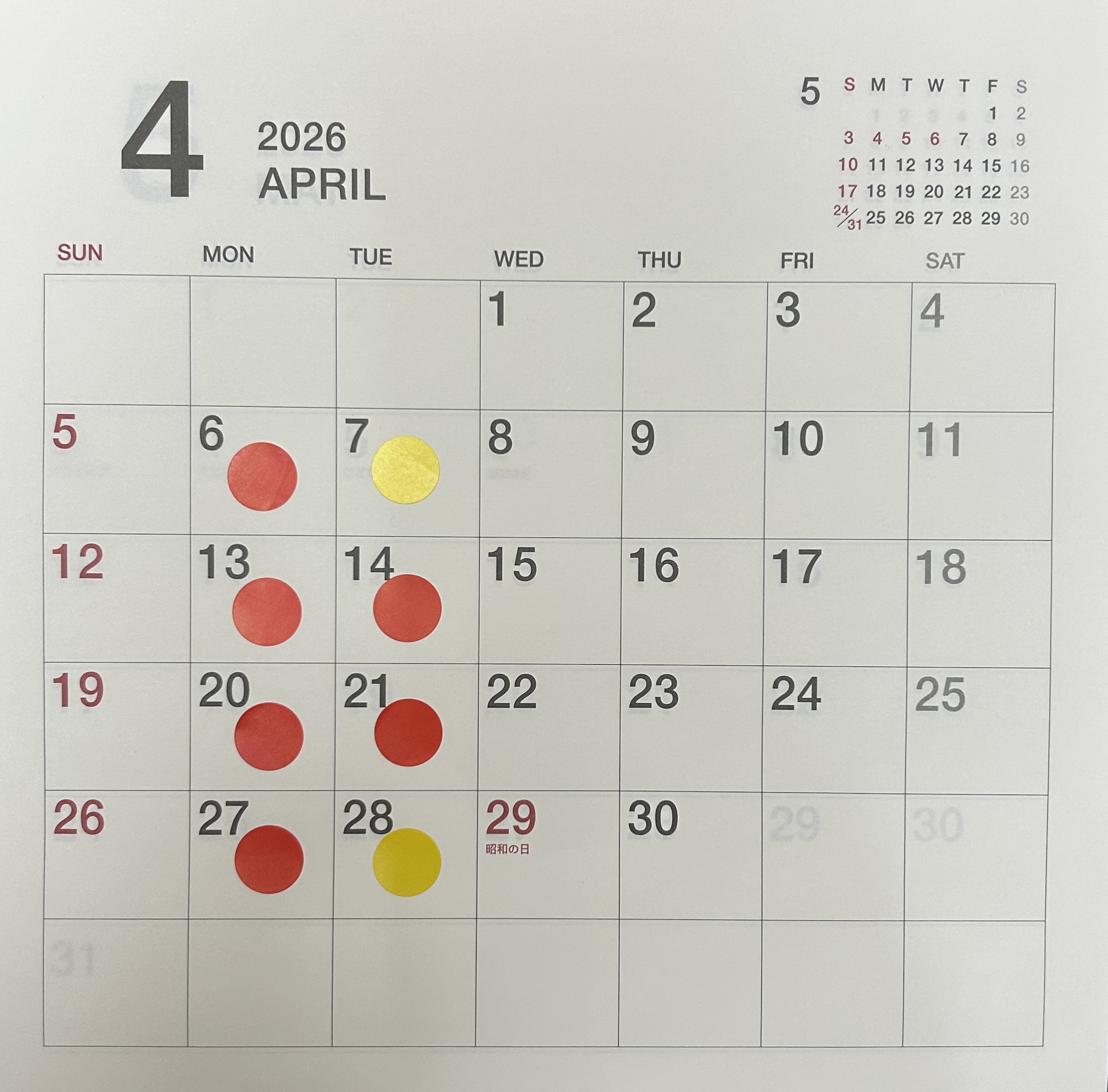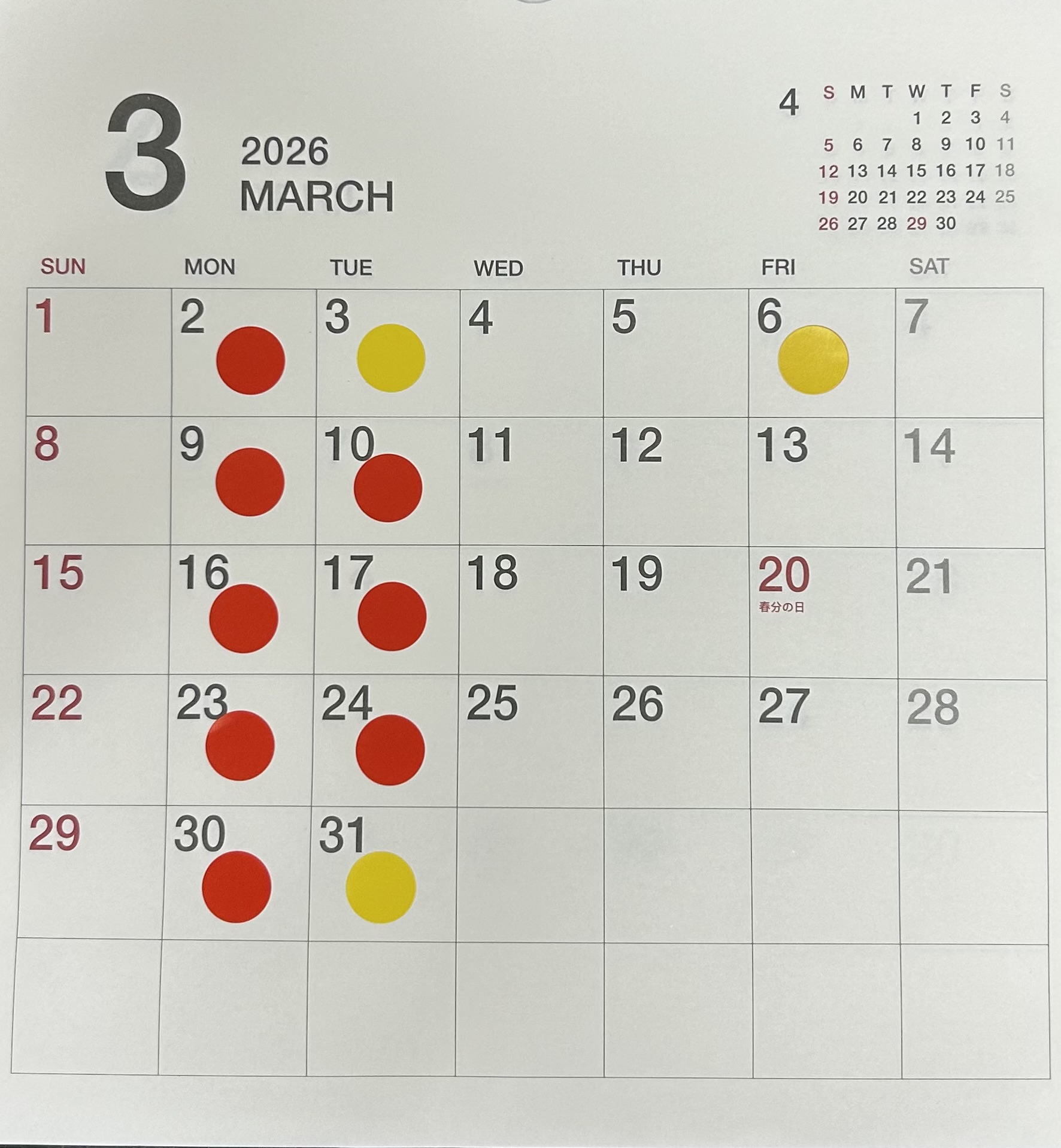 3月4月カレンダーです